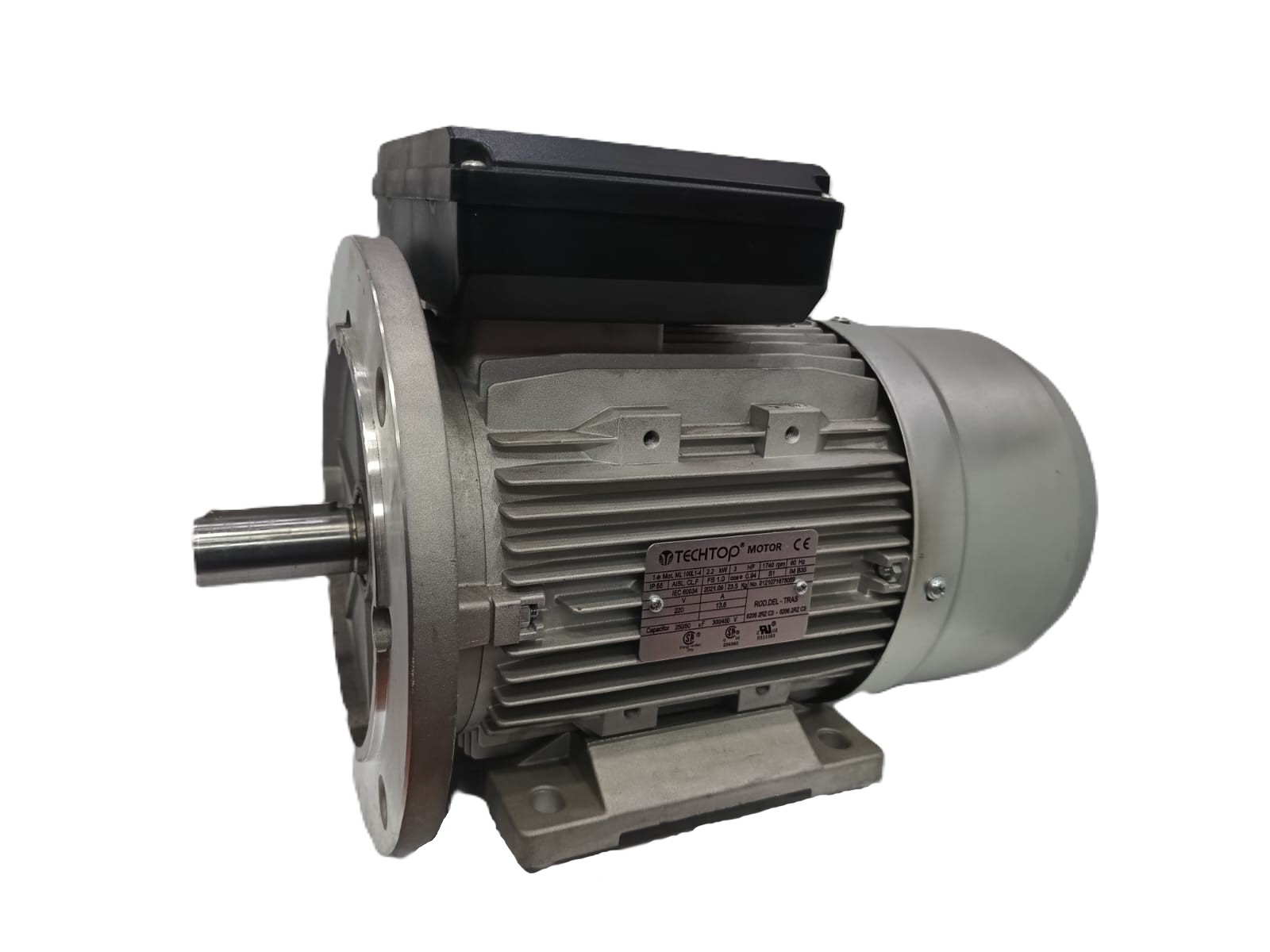 Motor monofásico marca Techtop, 3HP 1800RPM brida B5 , motor bobinado en cobre carcasa de aluminio eficiencia IE2
